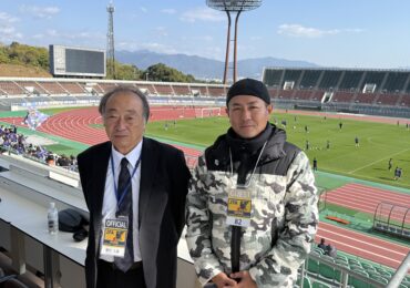 愛媛県サッカー協会の堀内会長と、県内におけるサッカーをはじめ
