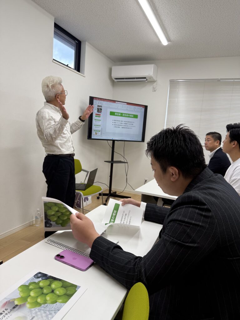 参加した人塾生は品川講師の講義を食い入るように聞き、シャインマスカット農家の未来や農業の明るい未来を感じ、施設見学においては、その思いをさらに強くしておりました。