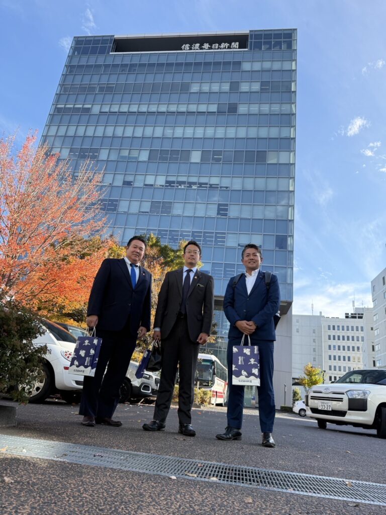 永易県議・田井野県議とともに長野県を視察し、信濃毎日新聞が展開する食品ロス削減アプリ事業等について学びました。まず信濃毎日新聞社が独自に開発・運用するスマートフォンアプリ「HELAS(ヘラス)」について説明を受けました。HELASは、飲食店・小売店がその日に売れ残りそうな商品や型崩れ品、賞味期限が迫った商品をリアルタイムでアプリに出品し、生活者がスマホで購入・受け取りできる仕組みです。これにより、これまで廃棄されていた事業系食品ロスを数値として「見える化」し、生活者が楽しみながら参加できる点が大きな特徴です。2023年7月の本格提供以降、県内多数の店舗・消費者が利用し、実証実験段階でも数百キロ単位の食品ロス削減につながっている実績もあります。さらに「HELASオンラインマルシェ」では規格外農産物を全国に配送する仕組みを構築し、運送事業者との連携で最大66%引きの低料金で配送を実現していることが、地域経済循環にも寄与している点が特筆されます。