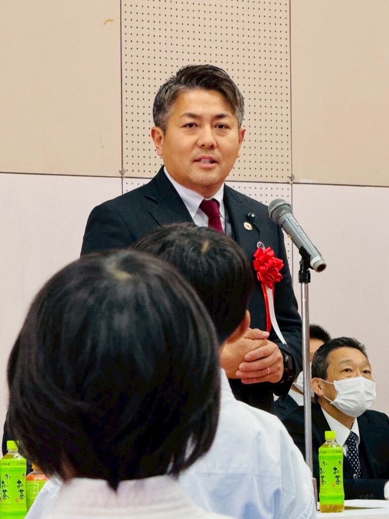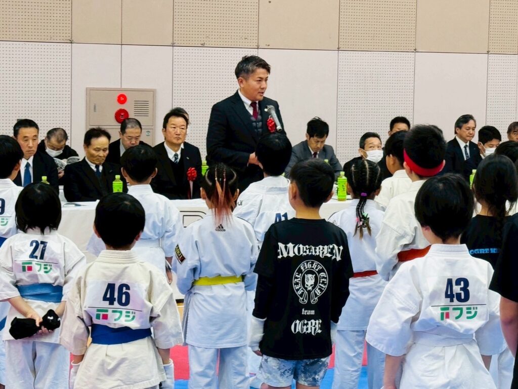 来賓としての挨拶では、勝敗だけにとらわれるのではなく、技を磨く過程で心を鍛え、自分自身と向き合うことができるのが空手道の大きな魅力であり、今日の経験が必ず今後の成長につながるという思いを伝え、選手たちを激励しました。