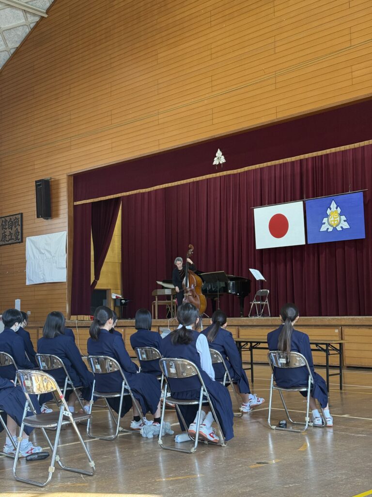 当日は、最初に楽器演奏が行われ、会場は終始和やかで柔らかい雰囲気の中でスタートしました。生徒たちもリラックスした様子で参加しており、話を受け入れやすい環境づくりが工夫されていることを感じました。