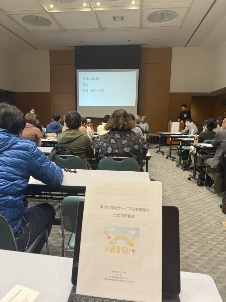当日は、障がい福祉に携わる関係者を中心に、約100名が集まり、会場は熱気に包まれていました。研修では、今の子どもたちとどのように接していくべきか、また障がいを持つ児童とどのように向き合い、支えていくべきかをテーマに、活発な議論が交わされました。現場で日々子どもたちと向き合っている方々の声には、悩みや葛藤、そして強い使命感が感じられました。