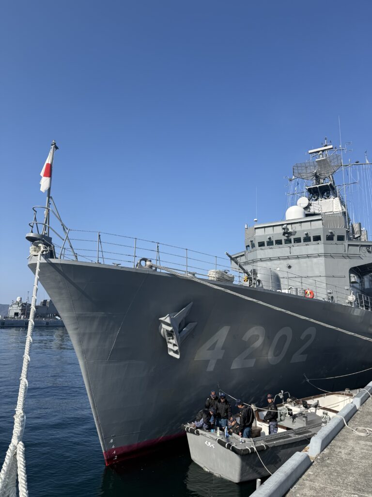 この視察はかねてより念願であった機会であり、大変意義深いものとなった。海上自衛隊呉基地の見学に加え、護衛艦「くろべ」の研修、さらに江田島に所在する海上自衛隊第1術科学校および幹部候補生学校を訪問し、我が国の防衛を担う人材育成の現場を直接拝見した。現場では、厳格な規律のもとで体系的な教育・訓練が行われており、国土を守るという強い使命感と責任の重さを実感した。また、旧海軍兵学校の歴史や展示にも触れ、国家と国民を守るために戦火に散った先人たちの生き様に思いを致す機会となった。その一つ一つの歴史には重みがあり、現在の平和が決して当たり前のものではなく、多くの尊い犠牲の上に成り立っていることを改めて認識した。今回の視察を通じて、防衛の重要性と平和の尊さを再認識するとともに、次世代へとつないでいく責任の重さを強く感じた。